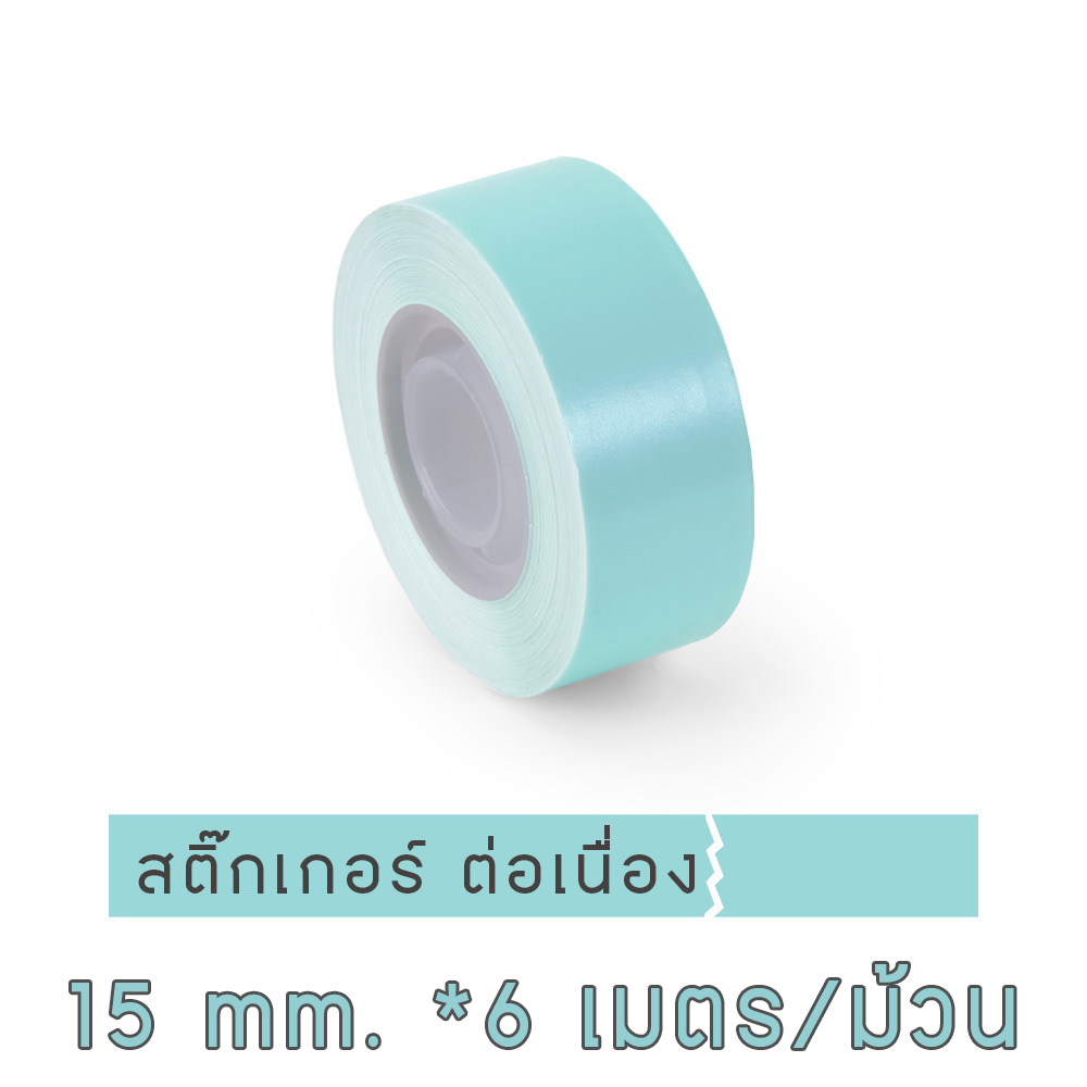 สติ๊กเกอร์ฉลาก สติ๊กเกอร์ต่อเนื่อง สีเขียวมิ้นท์ 15มิล ยาว6เมตร กระดาษสติ๊กเกอร์ต่อเนื่อง สำหรับเครื่องปริ้น sticko Q30
