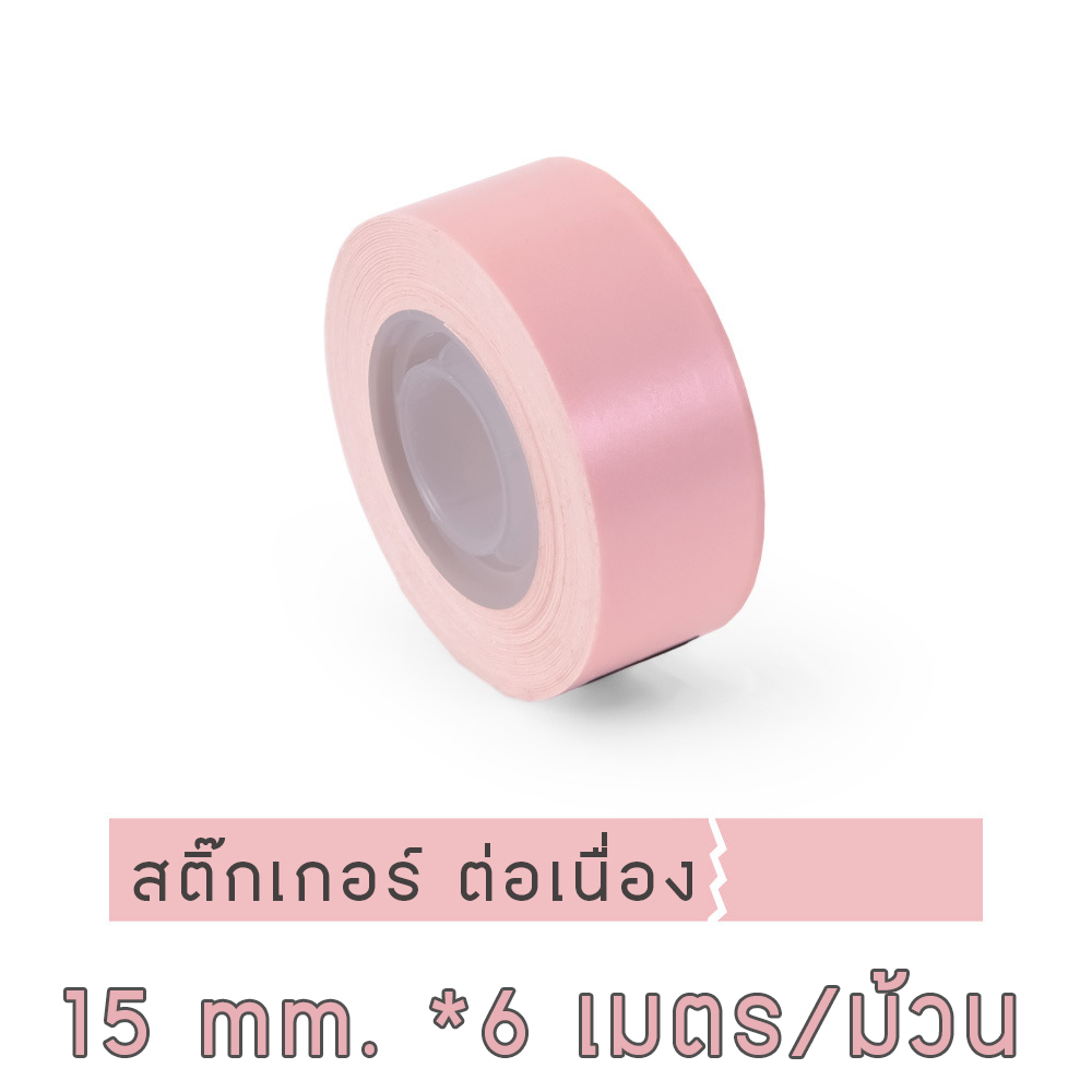 สติ๊กเกอร์ฉลาก สติ๊กเกอร์ต่อเนื่อง สีชมพู 15มิล ยาว6เมตร กระดาษสติ๊กเกอร์ต่อเนื่อง สำหรับเครื่องปริ้นsticko รุ่น Q30