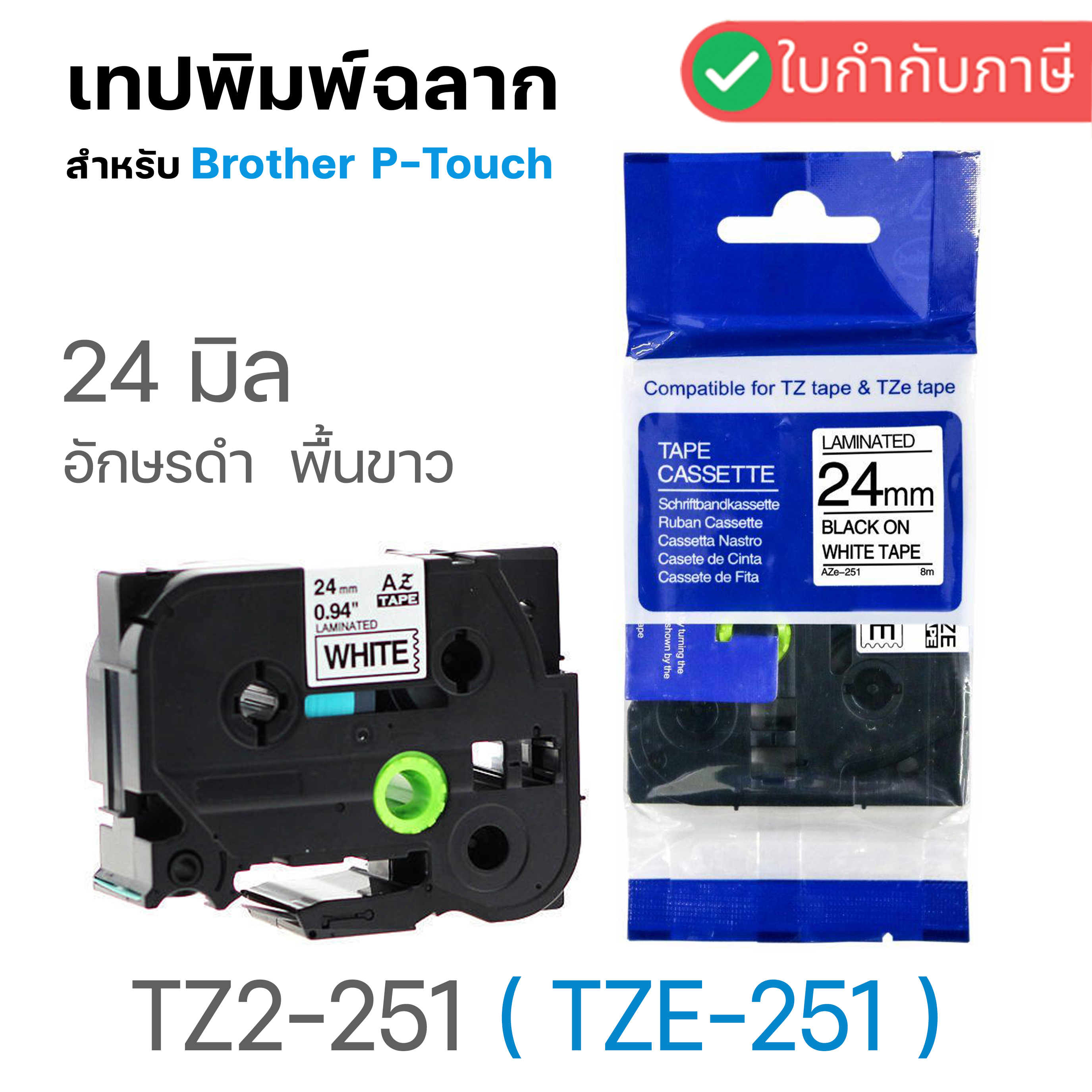 รหัสสินค้า : LBT-TZ24-BKWH สีตัวอักษร : ดำ สีพื้นเทป : ขาว