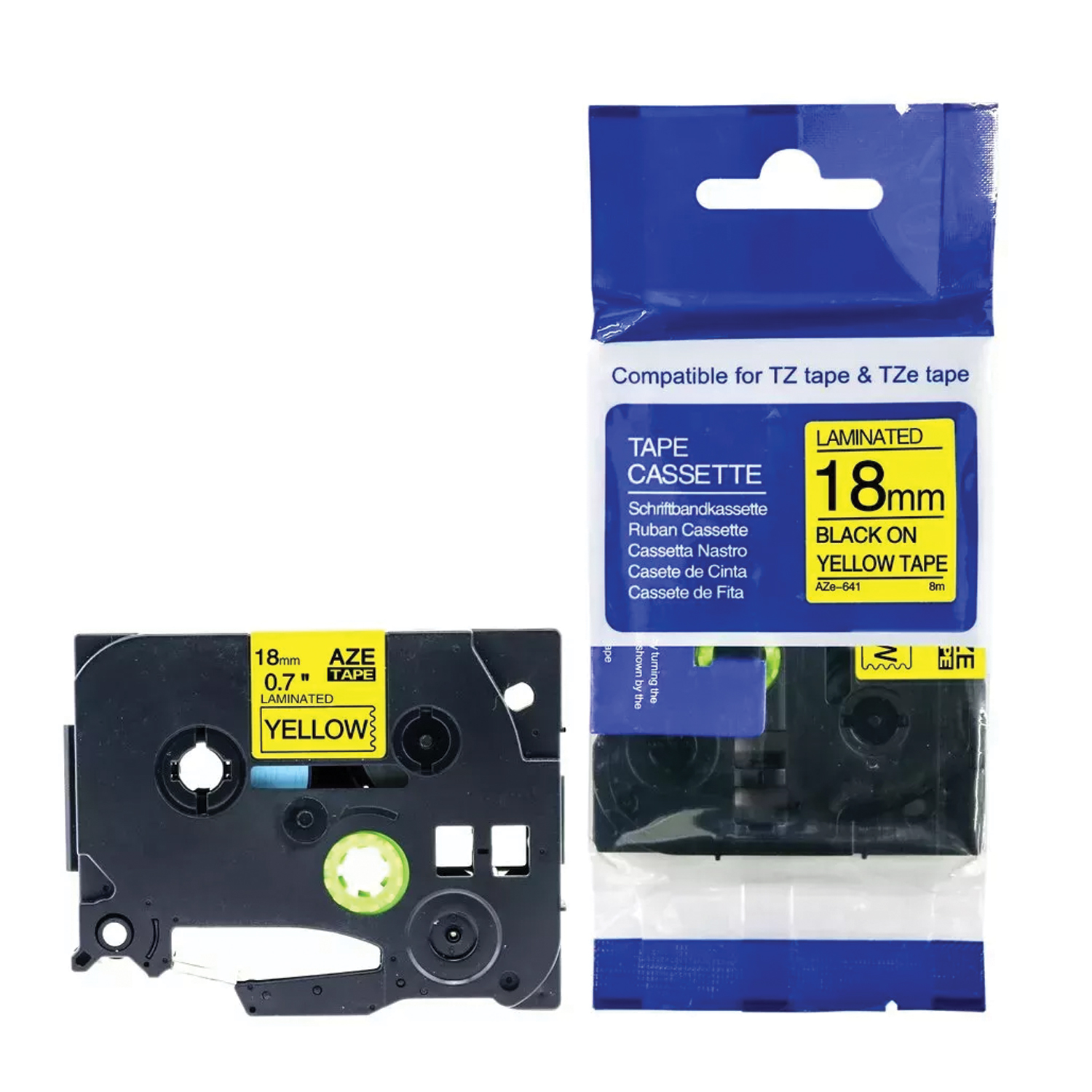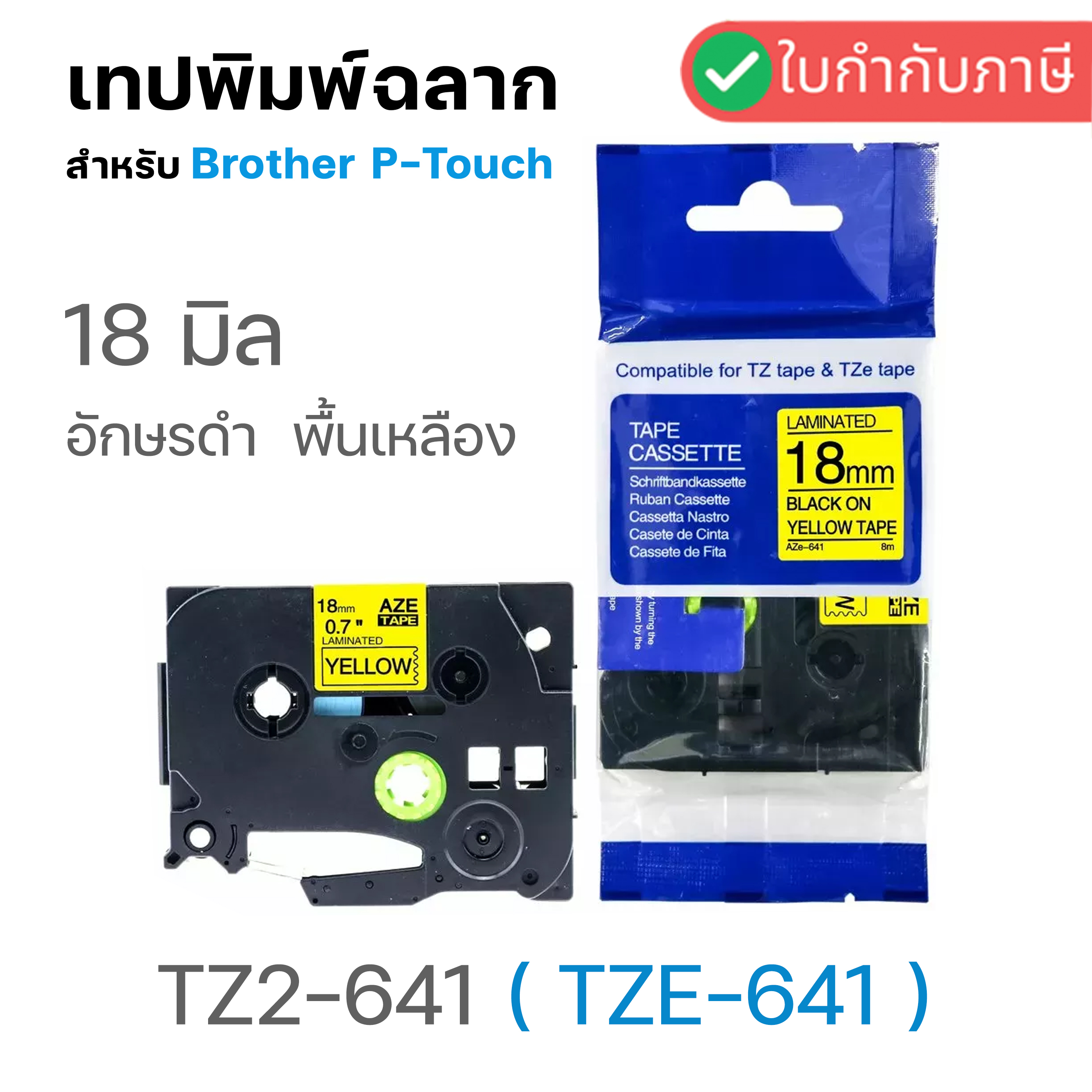 รหัสสินค้า : LBT-TZ18-BKYE สีตัวอักษร : ดำ สีพื้นเทป : เหลือง