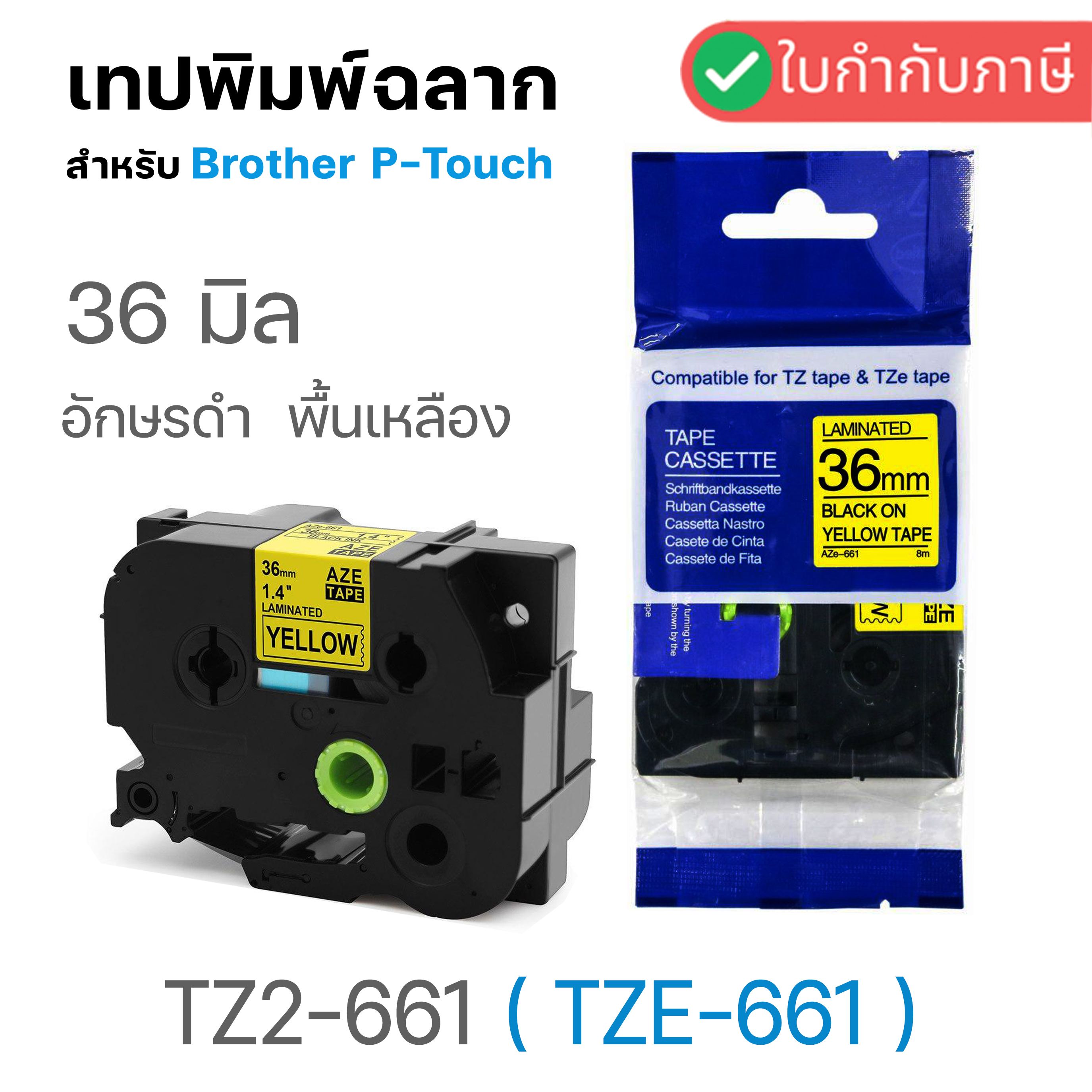 รหัสสินค้า : LBT-TZ36-BKYE สีตัวอักษร : ดำ สีพื้นเทป : เหลือง