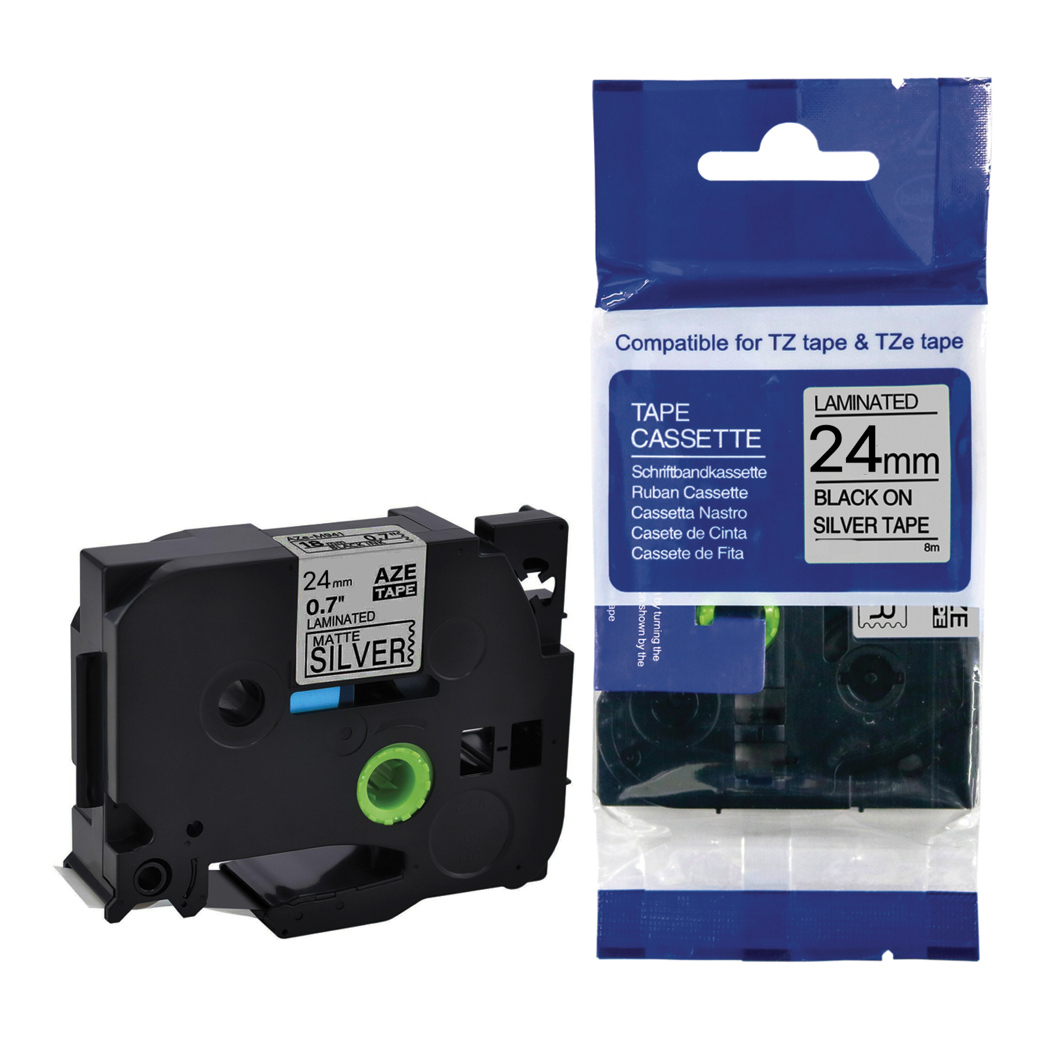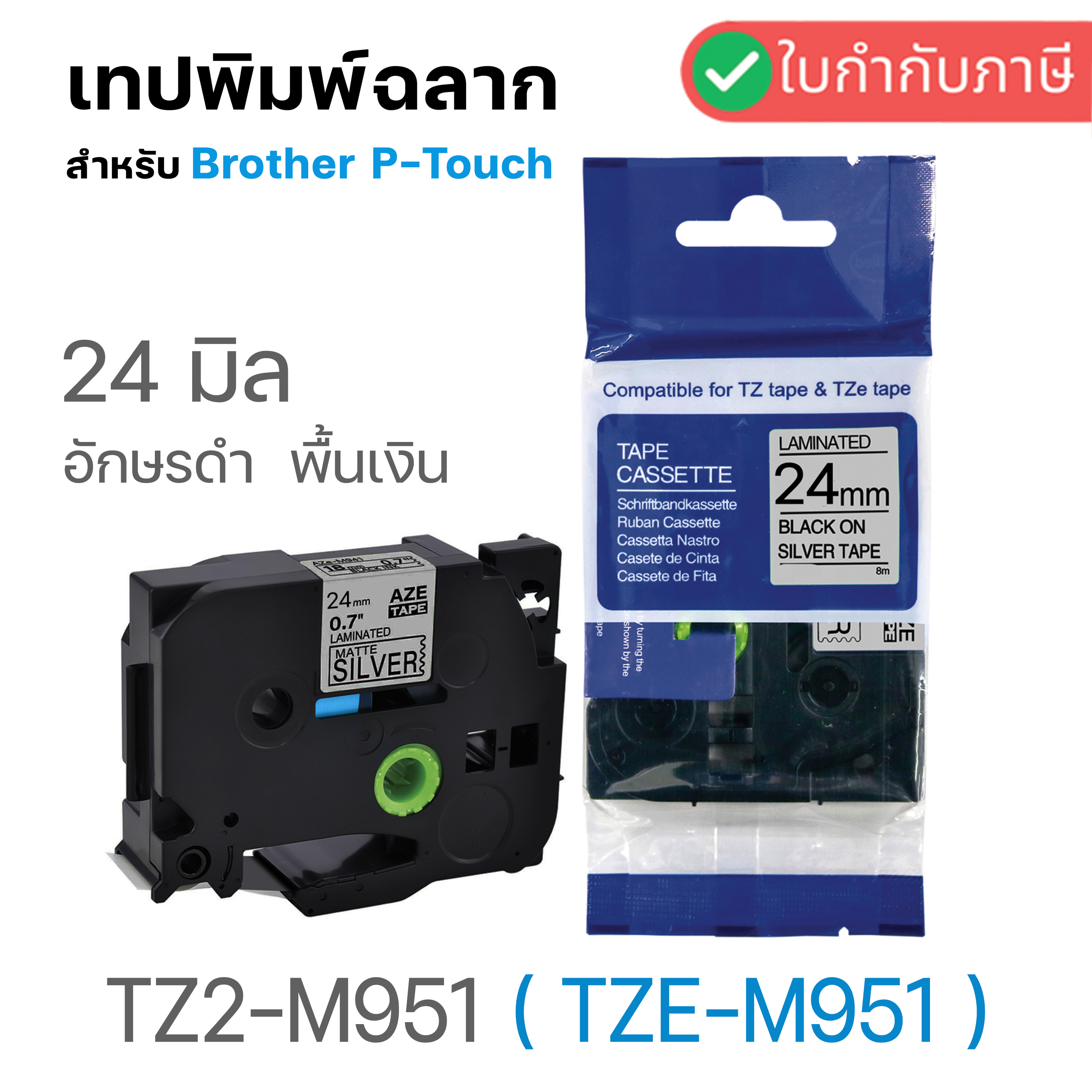 รหัสสินค้า : LBT-TZ24-BKSI สีตัวอักษร : ดำ สีพื้นเทป : เทา